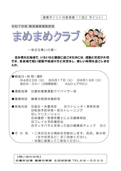 令和7年度 『まめまめクラブ』開催のご案內です。