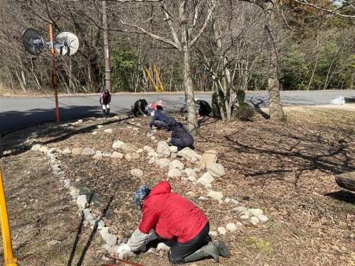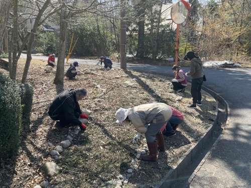 そして、 美化ウォーク後に FV街區(qū)入口公園の“シバザクラ花壇”の お手入れをしていただきました
