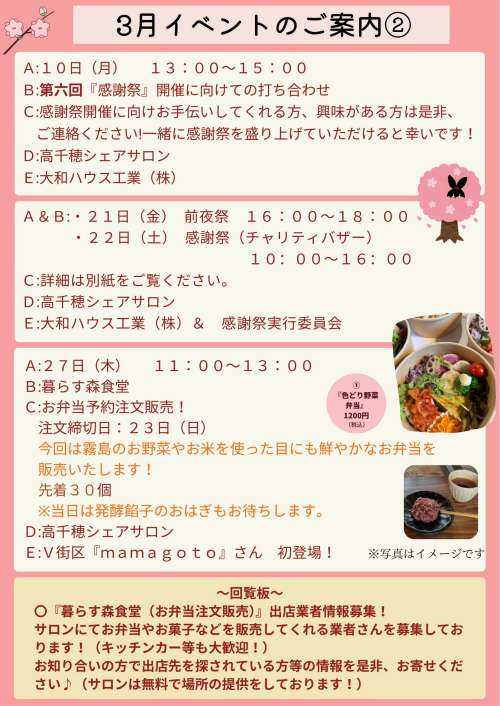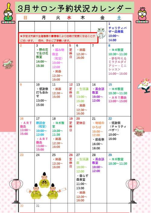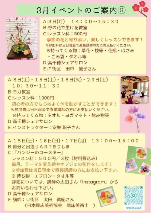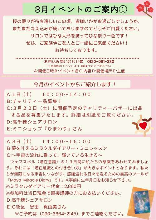 『3月イベント案內』のお知らせです!