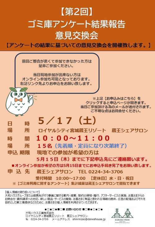【第2回】ゴミ庫アンケート結果報告?意見交換會を開催致します。