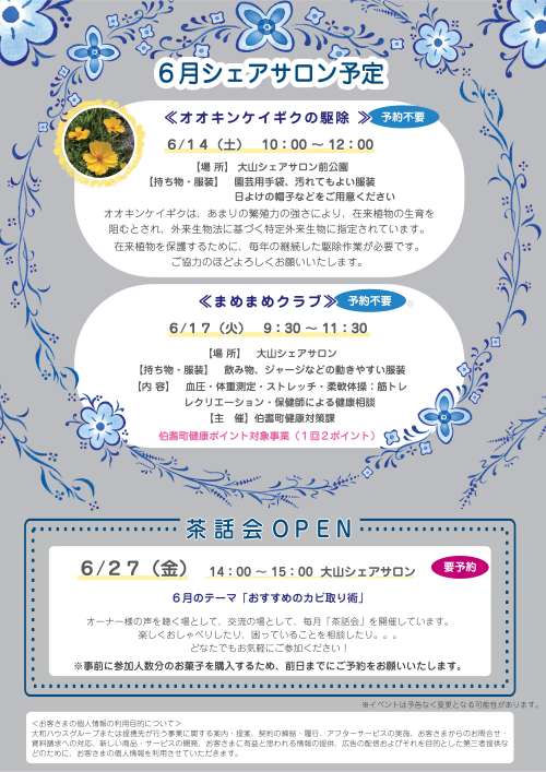 【開催日時】 6月27日(金) 14:00〜15:00 【場所】 大山シェアサロン