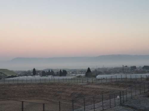 1,2街區は森に囲まれた街區ですが、一二三橋を渡ると目の前に 阿蘇の「北外輪山、九重連山」の眺望が目に飛び込んできます。 元日の今朝は靄がかかっていましたが、阿蘇盆地の雲海の上に 大観峰を眺めることができました。