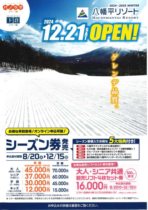 八幡平リゾートパノラマ?下倉スキー場 2024年12月21日OPEN