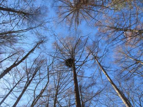 先日、分譲地內(nèi)を巡回し歩いている時に上空を見上げると、カラマツの高さ15mくらいの位置に大きな黒い巣を見つけました