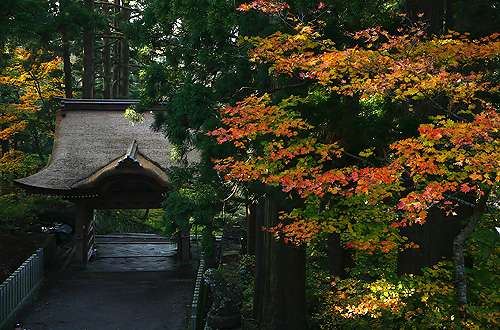 大神山神社奧宮 大山の古剎。境內にあがった場所から逆さ門を見下ろす場所は 水墨畫にも出てきそうな情緒満點の秋風景。 (別荘地より約7.9km 平成22年11月4日撮影)