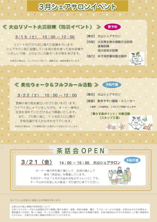※雨天の場合は、シェアサロン內で避難方法?通報訓練を行います。
