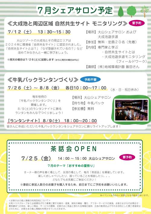 【開催日時】 7月25日(金) 14:00〜15:00 【場所】 大山シェアサロン