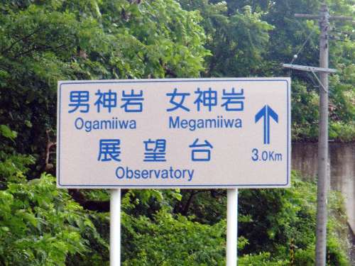 男神巖(おがみいわ)180m、女神巖(めがみいわ)160mがあり、大きさ日本一の夫婦巖だそうです