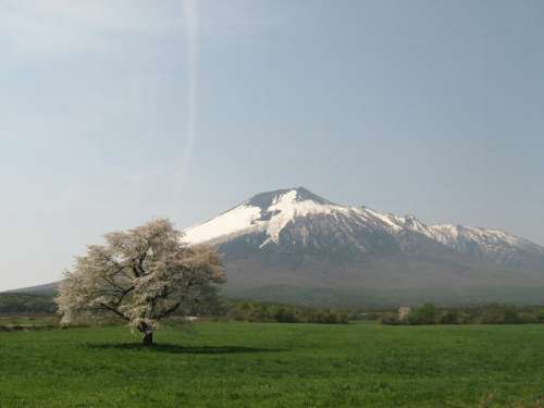 秀峰?巖手山を中に挾んで、北と南、表と裏に全く同じような一本桜が自生するという、なんとも不思議な光景、ぜひぜひご自分の目で確かめてみてはいかがですか。