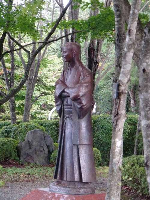 小道の先に目を移すと、そこには有名な石川啄木の像が