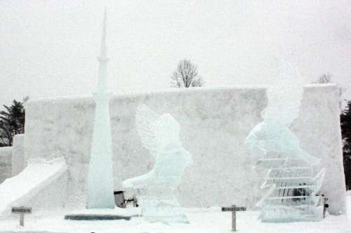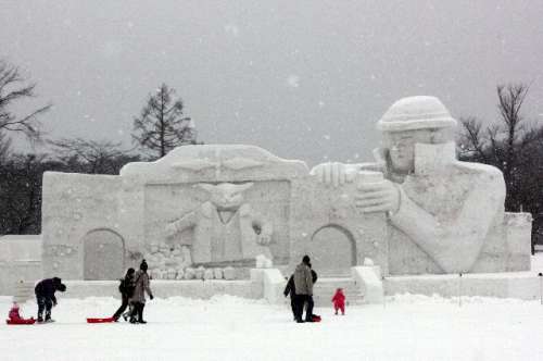 自衛隊員など延べ4,000人が參加して作られたという趣向を凝らした巨大な雪像や氷像が、訪れる人々の目を楽しませています