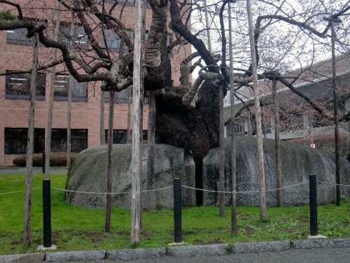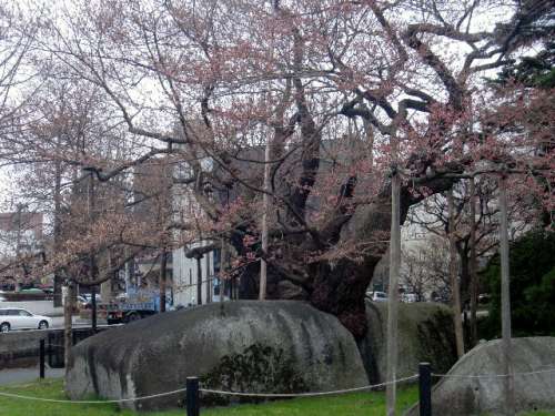 『石割桜』とは盛岡市にある巨大な花崗石の割れ目から育った、直徑1.35m樹齢360年を超える桜です