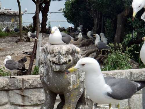 やっとの事で階段を登り切ります、境內も“ウミネコ”でいっぱいです