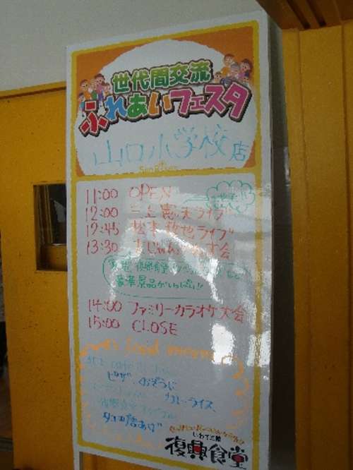 巖手県と宮古社會福祉協議會が主催する『巖手?世代間交流?ふれあいフェスタ?いわて三陸復興食堂』宮古の小學校にて開催されると聞いて私は居ても立ってもいられなくなり、同僚のS主任(先日の餅まきで私に拾ってはダメ~と注意した人)と一緒に出掛ける事にしました