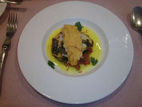 次はカボチャのスープです、私はもう言葉が出ません完璧な味です、もう私はたまらずに“ワイン”を頼みます「あの~その赤いやつ~お願いします~」と言うとお店のスタッフの方は「次は魚料理の為、白ワインのシャルドネの方がよろしいかと思いますが??」と私のワインの無知さを上手にカバーしてくれています