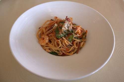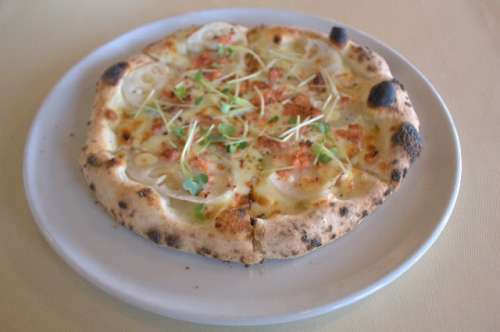 海老とベビーリーフのパスタ、鮭とレンコンのチーズピザです、素材の旨みが引き立ちそれぞれの食材が豊かなハーモニーを奏でます