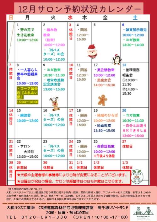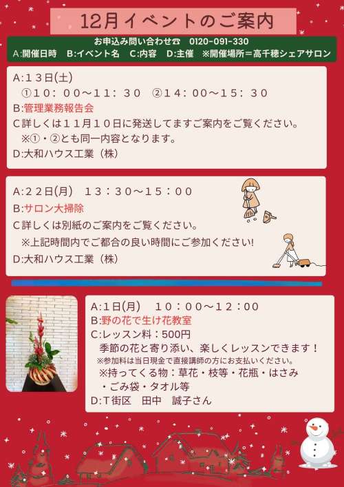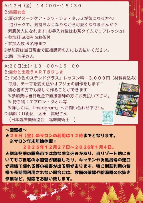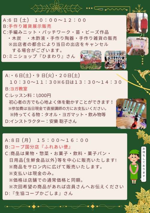 12月イベント案內をお知らせいたします。