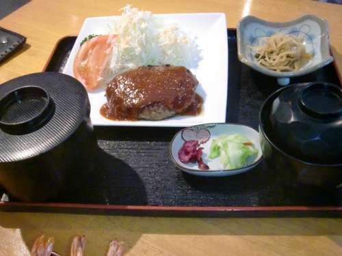 次はハンバーグ定食です、何と軟らかくてジューシーなんだろう口の中で溶けて行きます