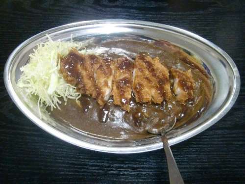 5?ルーの上にカツを載せ、その上にはソースがかかっている。