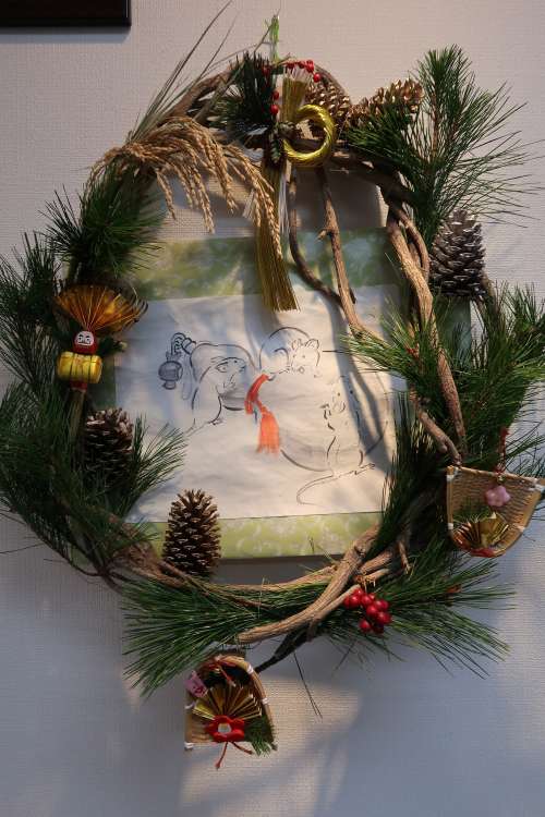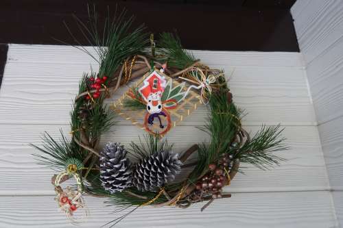 南なん亭のオーナー様より、手作りお正月リースを屆けていただきました。