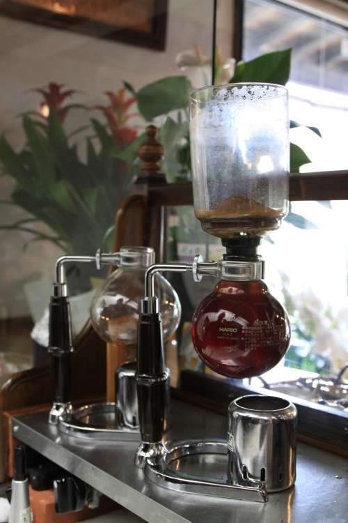 オーナーの桐原研二さんの自慢は、時間をかけて一杯ずつサイフォンで淹れるコーヒー「ドリップ式に比べ、味がまろやかに仕上がります」と桐原さん今年3月にテレビ局のカメラマンを定年退職し、約30年前に熊本市上通で経営していた『TEAROOMしもん』を復活させました。桐原さんは、阿蘇で新たに店を構えた理由を「ゆったりとした時間が流れる大自然の中で、お客様にくつろいでいただきたかったから」と言います