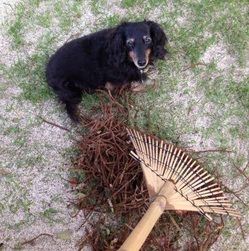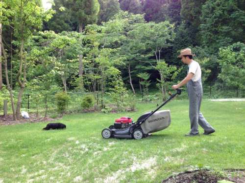 晴れ間をぬって、一家でお庭のメンテナンスです。