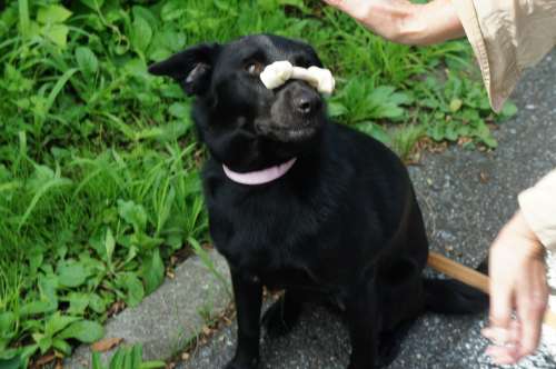 鼻の上に乗せたおやつを?????