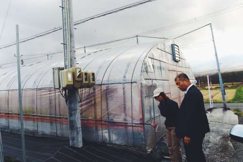 寫(xiě)真手前が武田さん、奧がバジルのビニールハウスを管理されている尾友さんです。