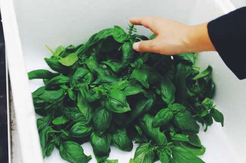こちらが収穫されたバジル。この箱にはA級(jí)品のバジルだけが入っているそう。