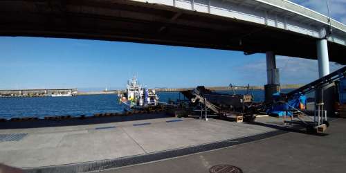 水揚(yáng)げしたホタテの洗浄などするための機(jī)械も並んでました。