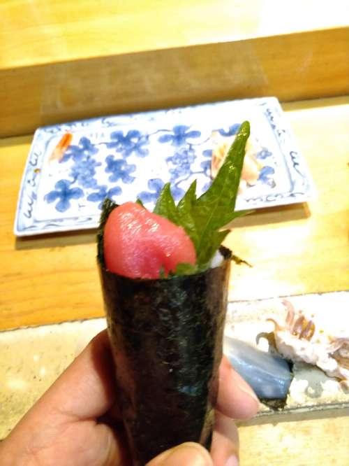 大壽しさんで食べることができます。 海苔が濕気る前に食べて~と大將から渡されます。 海苔のパリパリ感とたらこのプチプチ感がたまらなかったです。