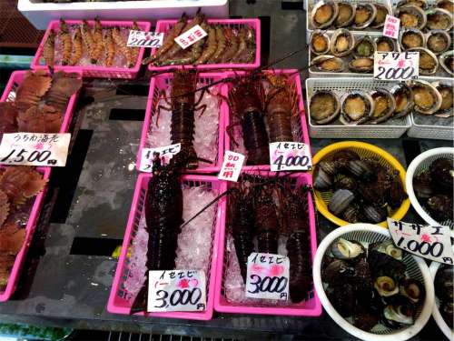 伊勢エビが大量に売られていて驚きました。この寫真のフレーム外にもウジャウジャいました。(分譲地から約31km)