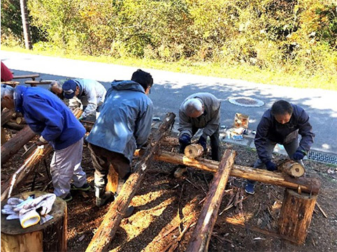 杉の間伐材を利用して手作りベンチを制作し、コース沿いに配置しました。