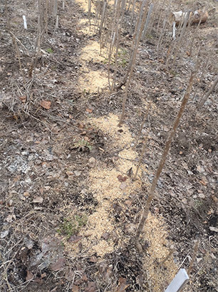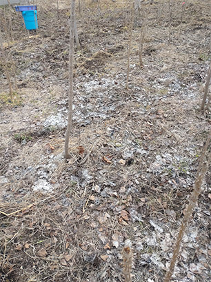 タラノキを育てるにあたり、土壌を良くするために薪ストーブの灰を撒いたり、厳冬期の凍結防止用に木くずを撒くといった工夫がなされており、オーナー様が主體となったタラノキ栽培を続けられています。
