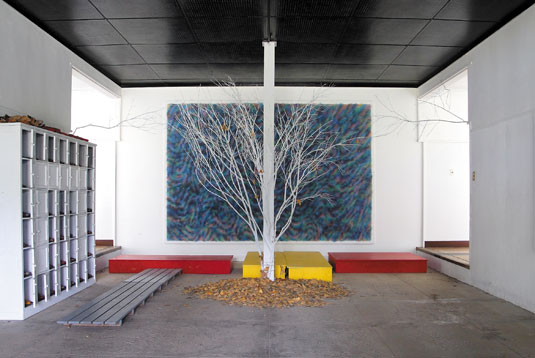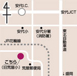舊荒屋小學校が美術家ゴトウ?シュウさんの手でギャラリーとなったのは2005年秋。1940年に安代町で生まれたゴトウさんは、グラフィックデザイナーを経てアートに専念。埼玉の自宅と東京の事務所を引き払い活動を続けていたが「10年で食いつぶし、次の人生を考えた時、親父が大好きだったこの土地に戻り、アーティストとして新しい何かをつかみたいと思った」と、奧様と愛犬、10トントラック1臺分の作品とともに帰郷した。