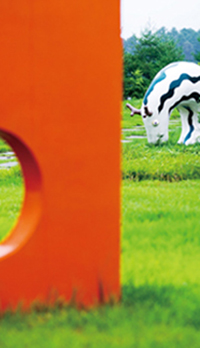 平成5年(1993)に巖手県初の野外彫刻美術館としてオープンした「石神の丘美術館」。自然を満喫しながら、蕓術作品を鑑賞できることが特徴だ。木々の間や青々とした芝生などの自然に溶け込むように、國內外の作家による彫刻が並んでいる。作品の多くは73年から開催の「巖手町國際石彫シンポジウム」で制作されたもの。なかには遊具として子どもたちに親しまれているものもある。