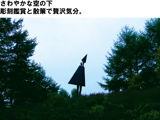 実は、この野外展示場は石神山の斜面に広がっている。といっても、トレッキング裝備は必要ない。散歩気分で散策路を歩き、気に入った彫刻の近くでひと休みをする。そんな楽しみ方もできる美術館なのだ。