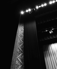 【レリーフ】大ホールの舞臺両脇には、見事なレリーフが施されている。