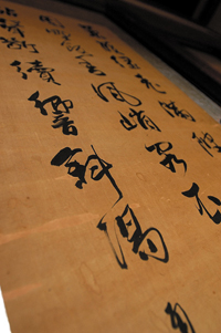 母の部屋の襖に描かれた漢詩「斜陽」の文字が當(dāng)時(shí)のままに記されている。