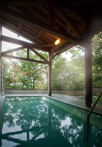 溫泉館には內湯と露天風呂があり、どちらも硫黃の匂いがする白濁の湯が満々としている。肌にピリッとする熱さを感じるが、徐々にじわじわとしてくる。1300年の歴史を誇るこの湯は、多くの人々を癒してきた。白濁の名湯と眼下に広がる大パノラマは、心身を解放へと導いてくれる。