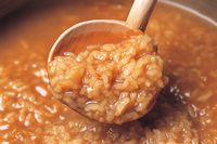 できた茶葉は水から煮出し、茶殻を漉して土鍋へ。さらにそこに地元産の米「津軽ロマン」を入れて炊くこと45分間。とろりとやわらかい茶がゆの完成です。