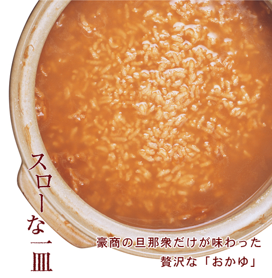 とろりとやわらかい茶がゆは、昔も今もヘルシー食。藩政時代、朝に町の商家からはこの茶がゆをすする音が聞こえてきたのだとか。