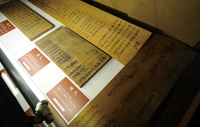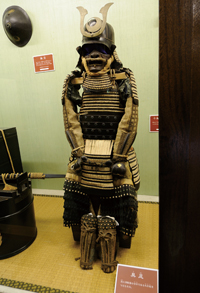 當時のままの急な階段を上って二層目に入ると、200年前に建てられた証の棟札が展示され、名板には地元大工など天守造営に関わった人たちの名が記されている。また武將が身につけたであろう鎧なども展示されていた。