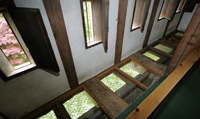 こぢんまりとした天守の中で目を引くのは、敵に石を落とす「武者落」。弓を射るための小さな窓「矢狹間」も整然と並び、江戸時代へ想いを馳せることができる。