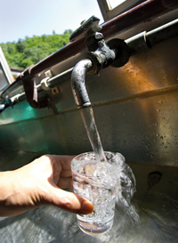蛇口をひねれば、流れてくるのは駒ヶ岳の湧き水。約9度の冷たい水を飲み干し、思わず「おいしい!」と聲をあげる。