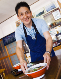 駒ヶ岳の湧き水をスープに用いた「國見ラーメン(500円)」は、食堂(11:00~12:30)で提供している。宿を守る人たちのあたたかいもてなしに心が和む。