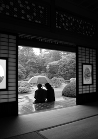 數寄屋造りの書院から庭を眺めれば、まるで絵畫のような靜けさに包まれる。