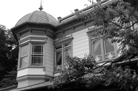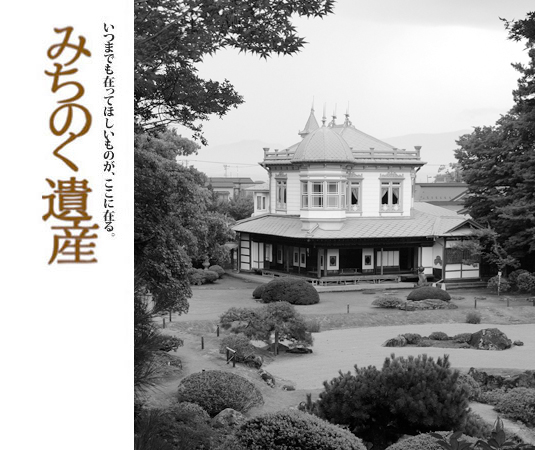 【洋館】和の庭にそびえる盛美館。和風建築の1階に、洋風建築の2階が重なる建物は、全國でも珍しいという。