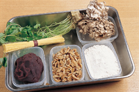 主な材料。具は餅のほか、舞茸、卵めん、三ツ葉。