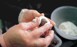餅の生地には、でんぷんがブレンドされていない、上質の白玉粉を使用。